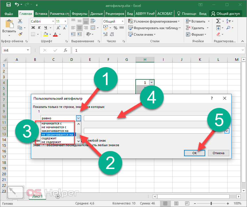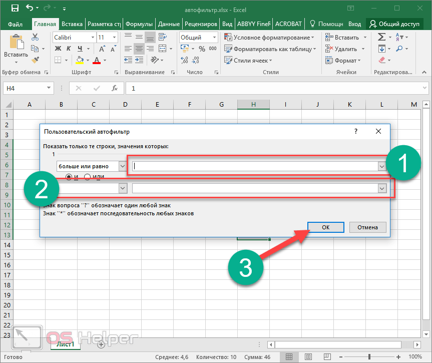Для сохранения пользовательского автофильтра требуется нажать на кнопку «OK».