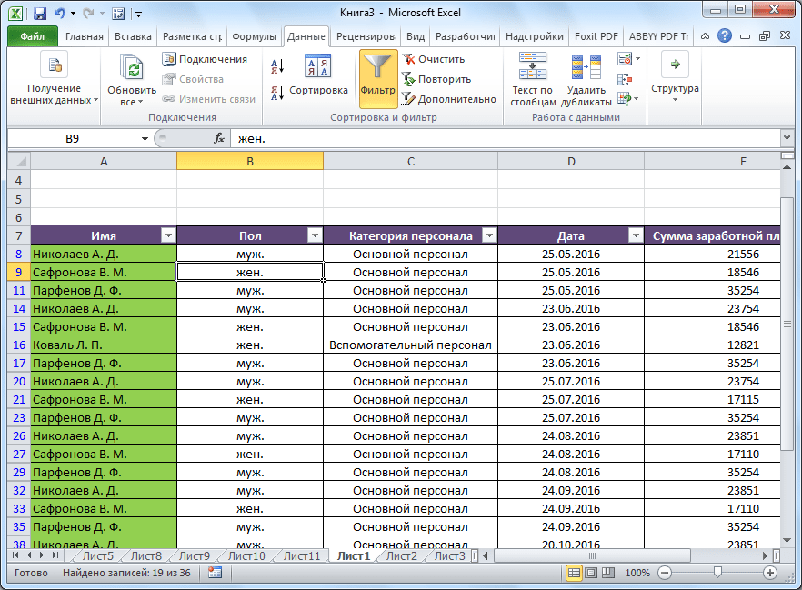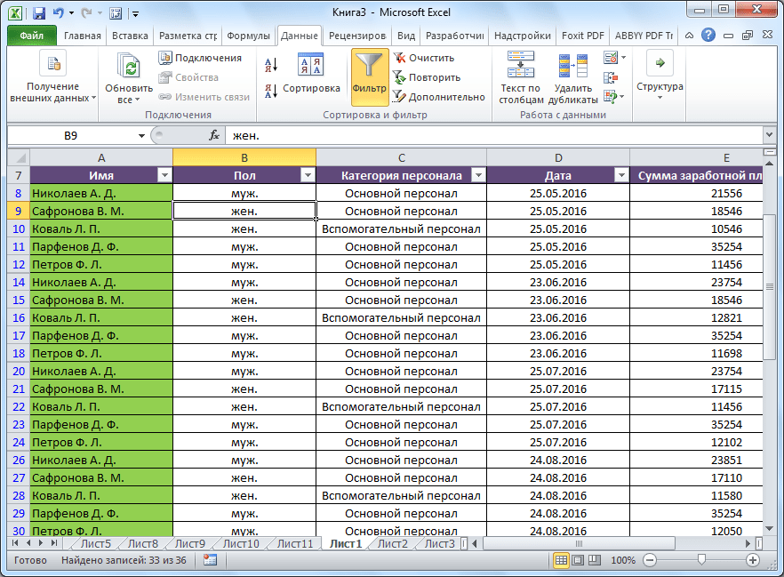 Фильтры и режимы фильтрации обеспечивают более удобную работу с данными таблицы.