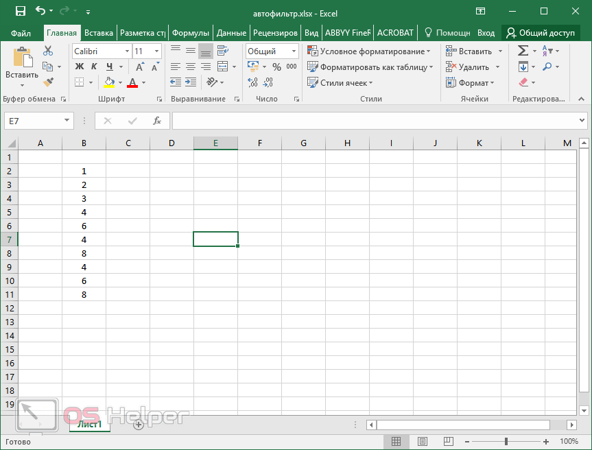 В первую очередь на нашем листе необходимо ввести несколько значений. Они и будут служить испытательным полигоном.