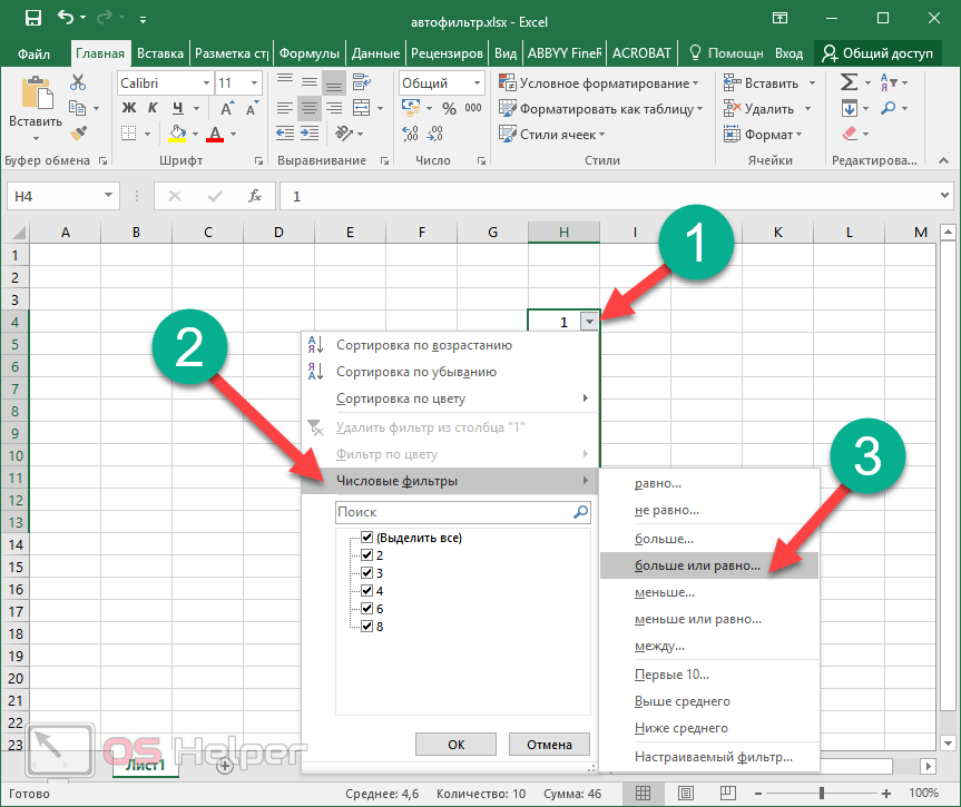 - Благодаря этому появится список уникальных значений. Вам нужно поставить галочки около тех данных, которые должны выводиться на экран.
