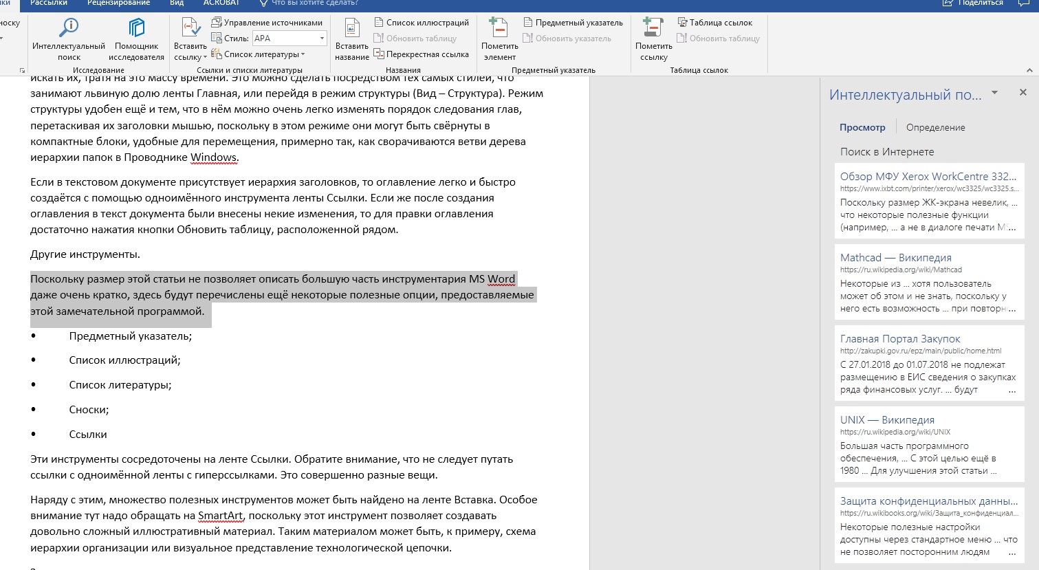 Поскольку размер этой статьи не позволяет описать большую часть инструментария MS Word даже очень кратко, здесь будут перечислены ещё некоторые полезные опции, предоставляемые этой замечательной программой.