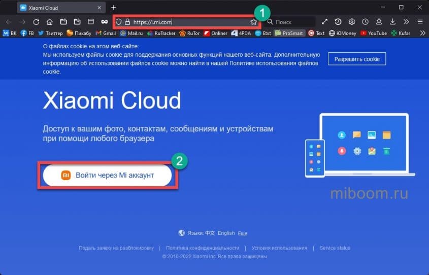 2.Нажимаем «Войти через Mi -аккаунт» и авторизуемся.