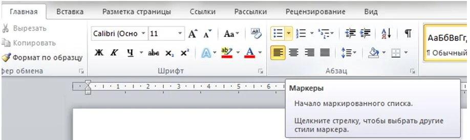 Списки в текстовых документах создаются при помощи меню «Абзац», главной вкладки: