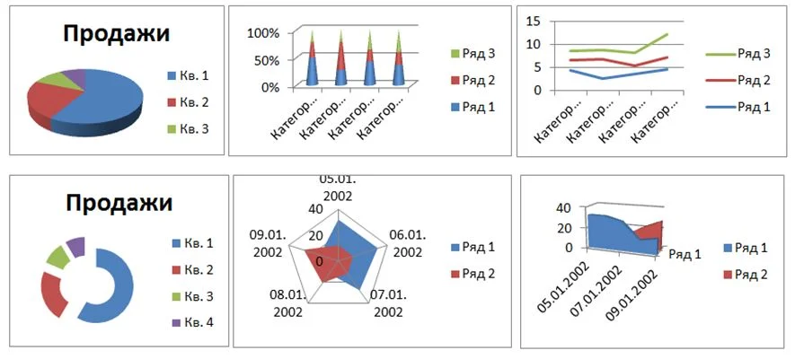 «диаграммы» в огромном ассортименте видов, форм и цветовых расцветок;