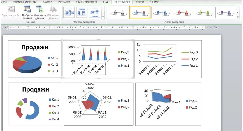 Дополнительно каждую диаграмму можно видоизменять при помощи конструктора: