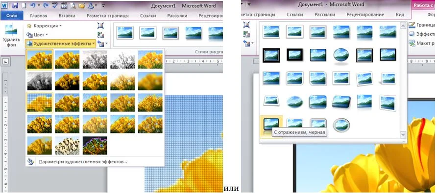 Изображения извне можно поместить на листе текстового редактора при помощи копирования и вставки, внедрения или связывания.