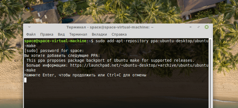 Сначала добавляем репозиторий с инструментом Ubuntu Make. Для этого воспользуемся командой sudo add-apt-repository ppa:ubuntu-desktop/ubuntu-make