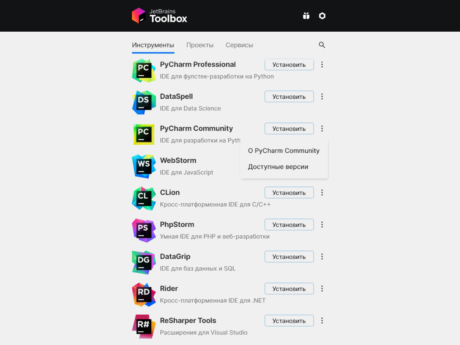 На данной странице вы можете выбрать версию PyCharm, которую хотели бы скачать. Нажмите на соответствующую кнопку «Скачать», выберите версию ОС, а затем подождите, пока процесс скачивания не будет завершен.