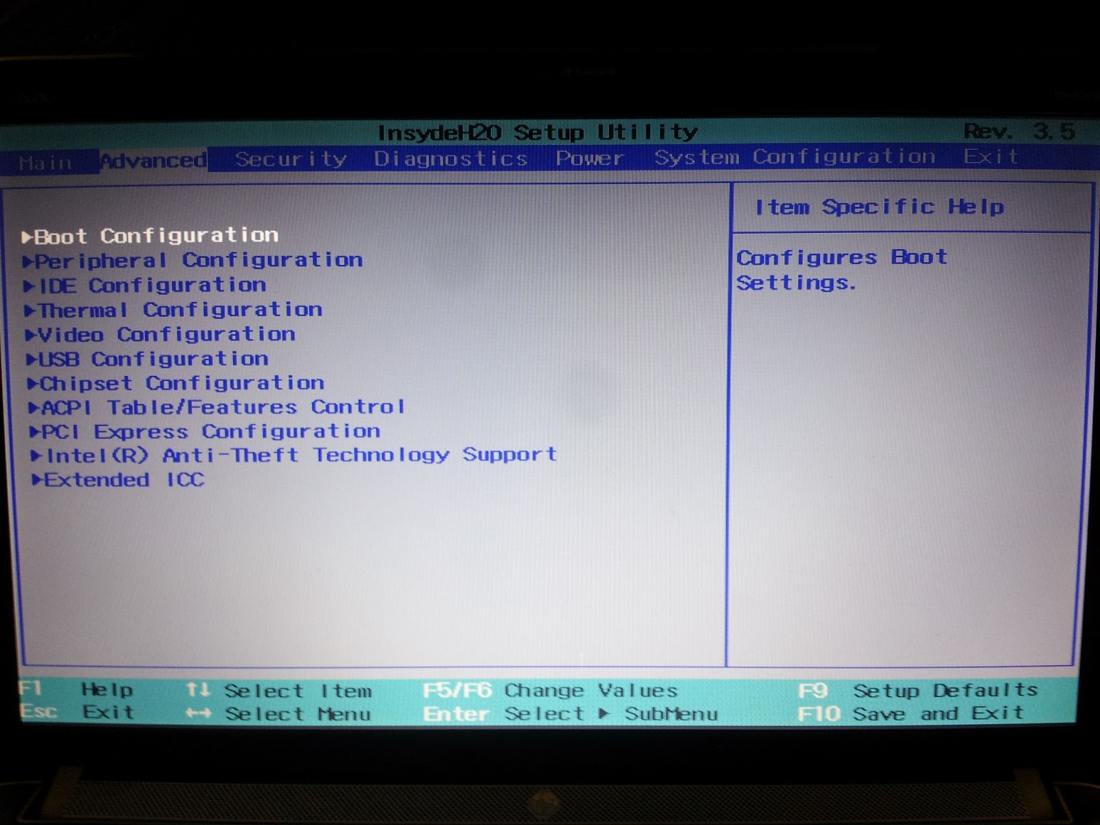 Как получить доступ к расширенному BIOS InsydeH20? Настройки?