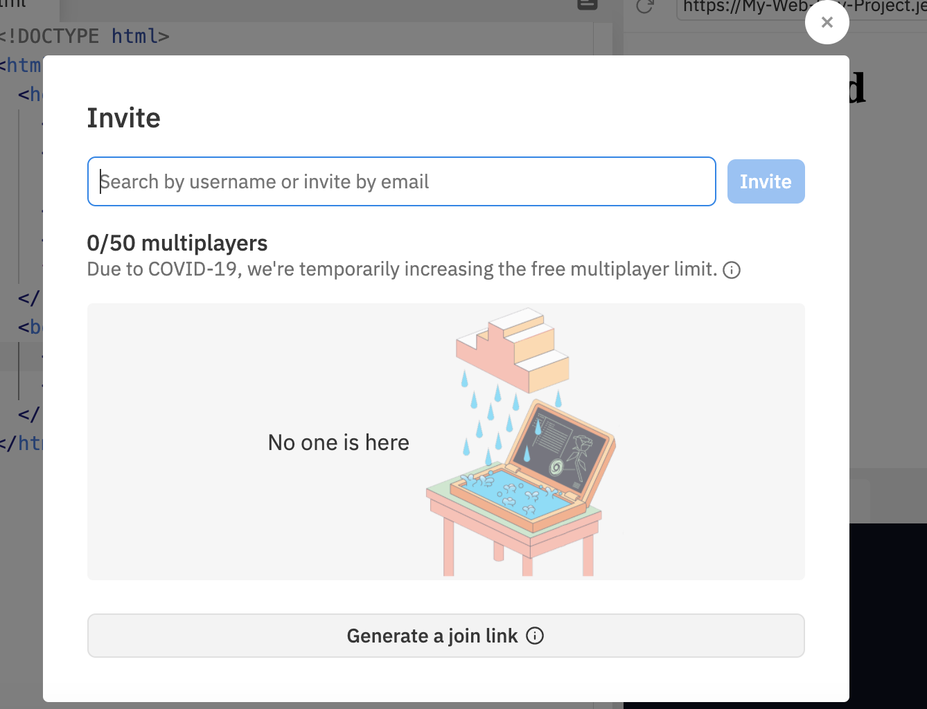 - Share your work and collaborate – Share a secure URL or invite your team via email to join and collaborate on the code. You decide who can make modifications or has access to the preview.