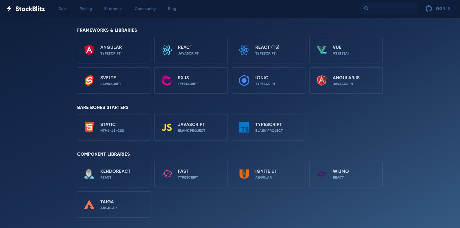 Tip: to try out StackBlitz, just type “node.new” (without the quotes) into your browser’s address bar.