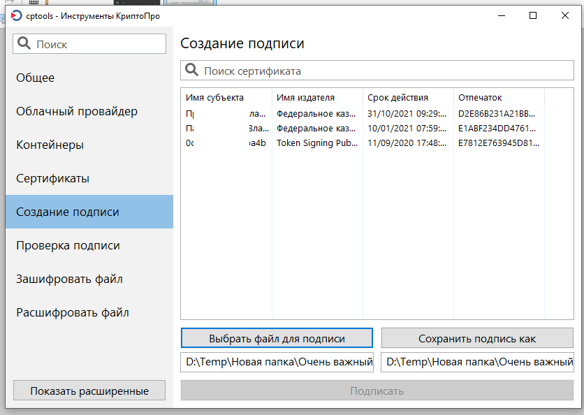 Программа для работы с ЭЦП