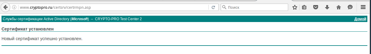 Установка сертификата