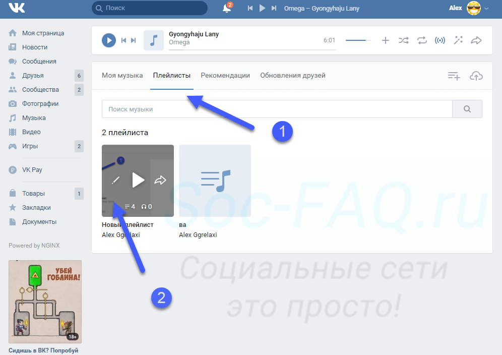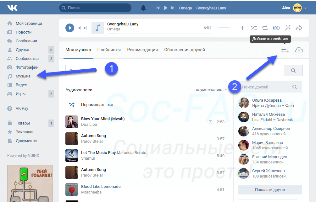 Как создать плейлист песен «ВКонтакте» с компьютера?