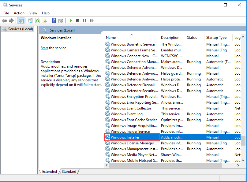Итак, когда вы обнаружите, что служба установщика Windows недоступна, вы можете попробовать проверить, остановлен ли установщик Windows. Здесь мы покажем вам, как запустить службу установщика Microsoft шаг за шагом.