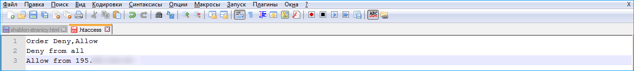 , то вы закроете доступ к сайту всем, кроме заданного IP. Учитывая, что IP злоумышленника меняется, нежелательный IP адрес указывается в директиве Deny. Две следующие за ними заполните одной цифрой 0. Вы сами можете устроить бан для всех посетителей из конкретной страны, если знаете национальный код. В этом случае после deny from напишите, например: 83.4.0.0/14. Цифра 14 после слеша указывает, что надо блокировать все IP, начинающиеся с 83.4.