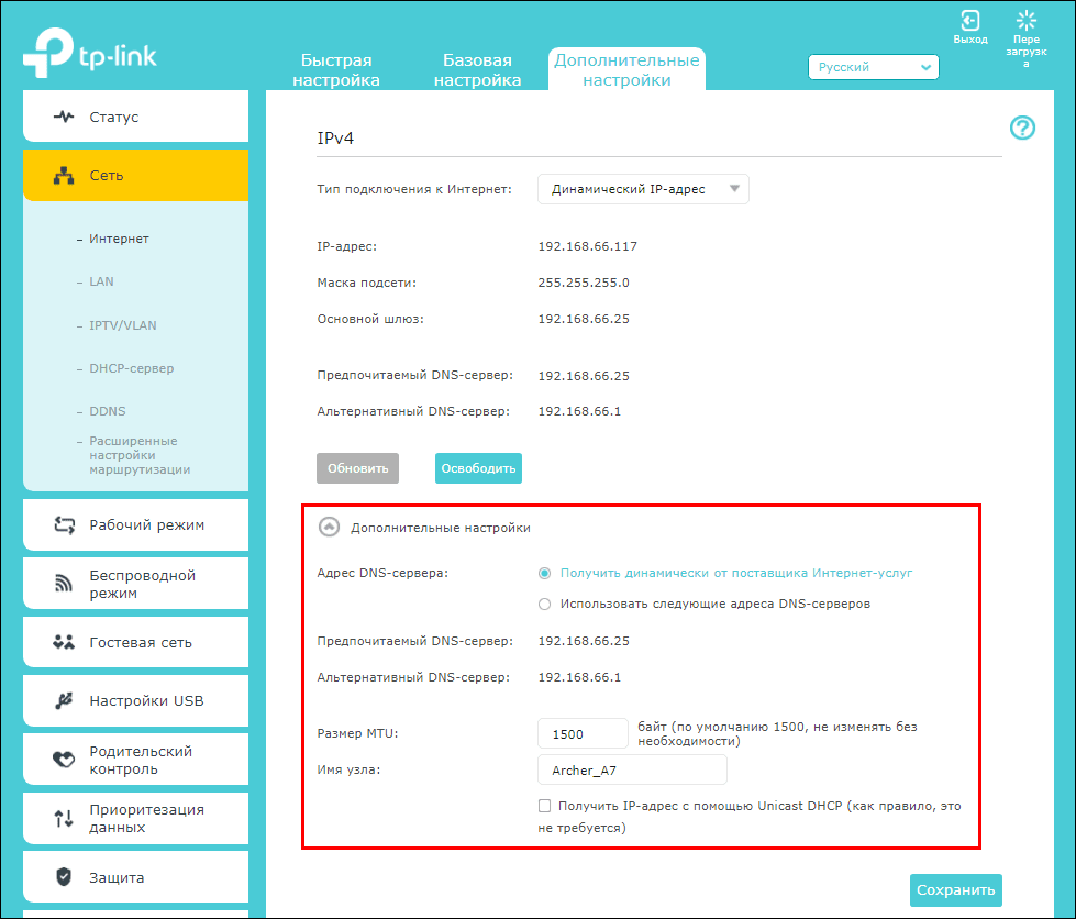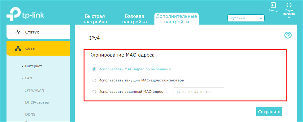 Большинство современных роутеров и сетевых адаптеров ПК/ноутбуков поддерживает возможность клонирования MAC. На Archer A7 эта функция также находится в дополнительных настройках.
