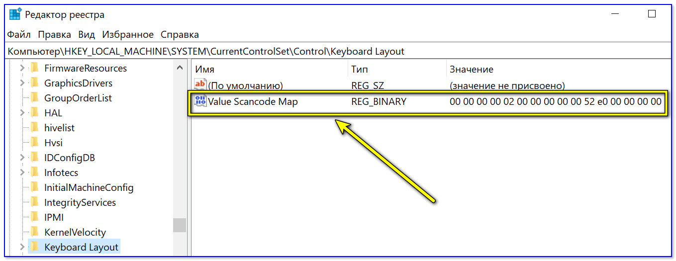 - создать в этой ветке параметр (Binary) с именем «Value Scancode Map» (без кавычек) ;