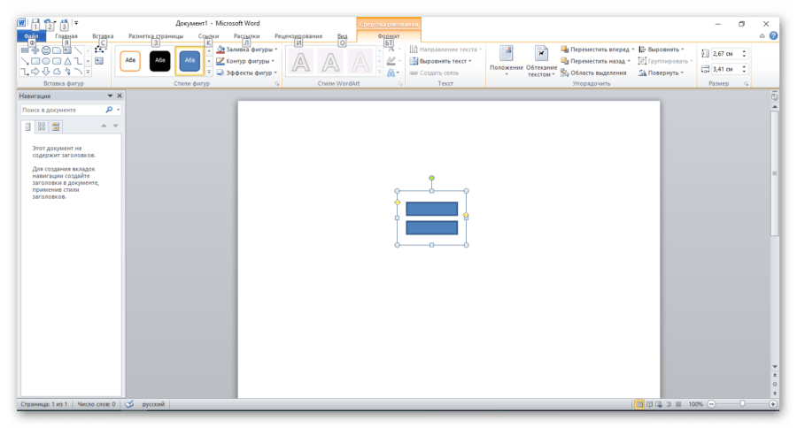 Здесь же можно задать новое полотно и начать рисовать в нем. При этом будет автоматически осуществлен переход на вкладку «Средства рисования» — «Формат» и там можно будет выбрать те же фигуры.