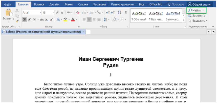 Поиск в тексте. Файл Word