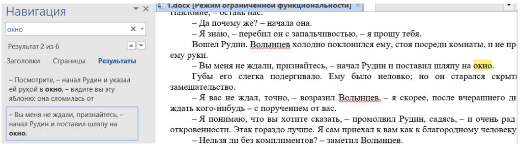 Например, нам надо в произведении И. С. Тургенева найти слово “окно”, причем именно с маленькой буквы. Тогда применяем настройки “Учитывать регистр”, а также “Только слово целиком”.