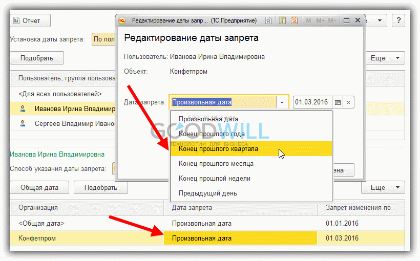 В 1С есть способ упрощения — установка «динамической» даты запрета. То есть программу можно настроить так, что система автоматически будет «передвигать» дату запрета. Пример — на конец года, месяца, квартала, недели, дня.