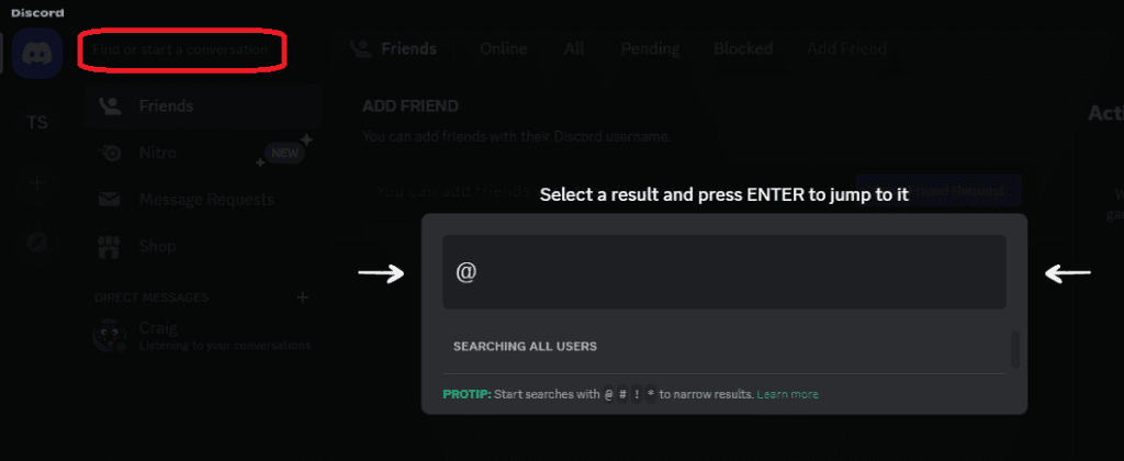 Discord has several native features that can help you search for someone without even leaving the platform.