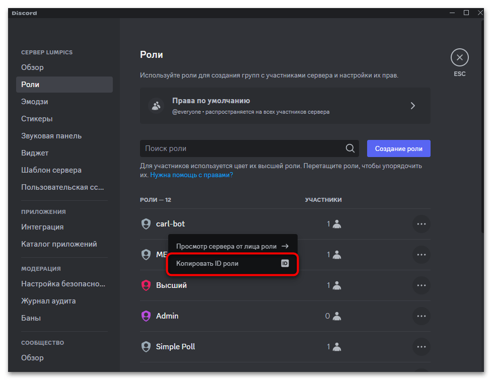 Из контекстного меню выберите пункт «Копировать ID роли».