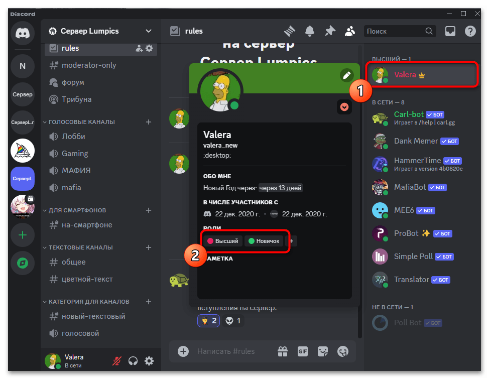 - Когда вы открываете сервер, вам нужно найти список участников сервера. Обычно список участников находится в левой части экрана или вы можете найти кнопку «Участники» в меню сервера.