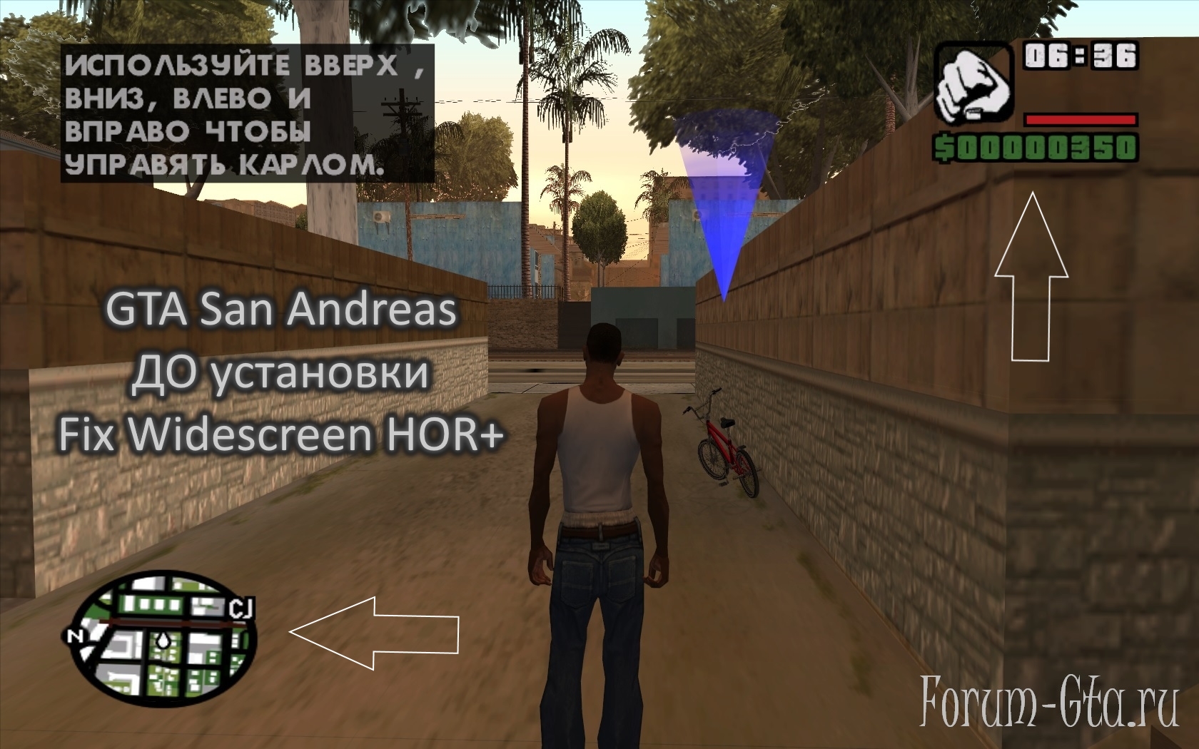 GTA San Andreas ДО установки Fix Widescreen HOR+