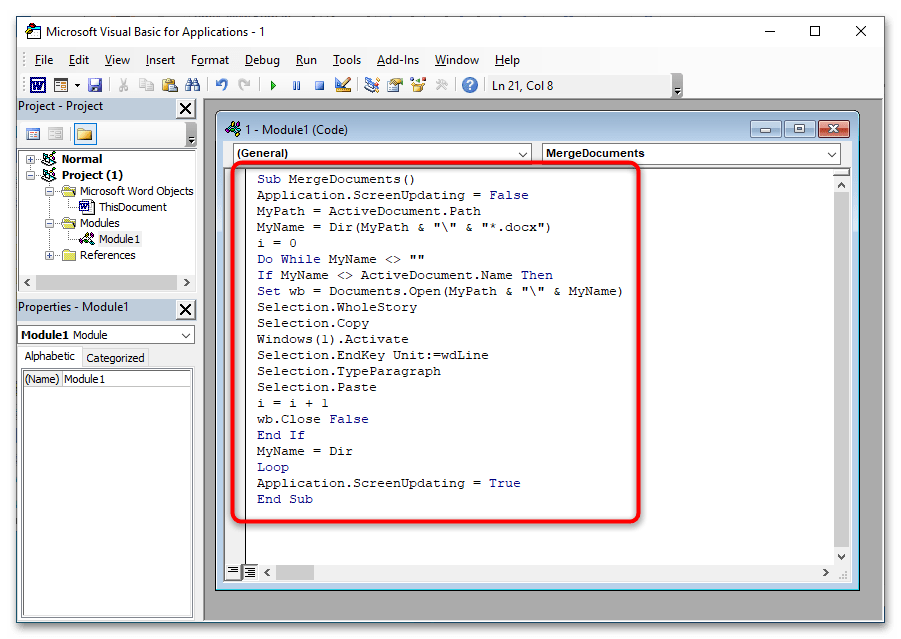 Встроенный в программы из пакета Microsoft Office язык программирования VBA (Visual Basic for Applications) — довольно простой, но мощный инструмент для упрощения работы с документами. Он берет всю рутину на себя и может даже объединить файлы. Пошаговая инструкция: