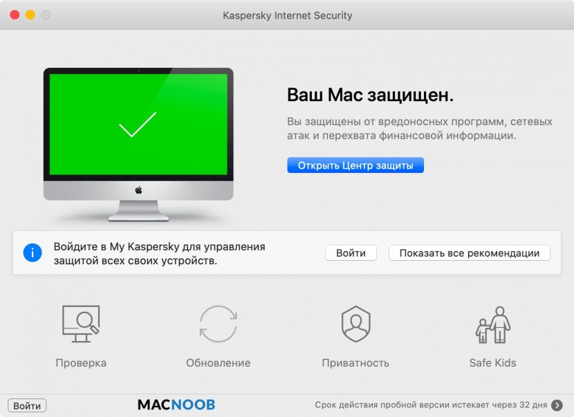 Скачать пробную версию на месяц можно с официального сайта Касперского. Она прекрасно подойдёт, чтобы узнать есть ли вирусы на macOS.