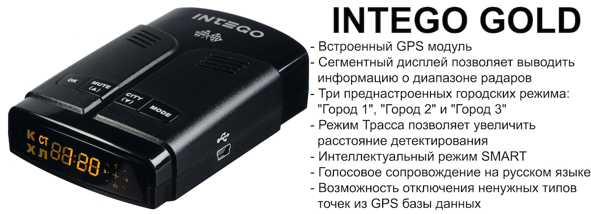 Характерные особенности и преимущества нового радар-детектора INTEGO GP GOLD S :