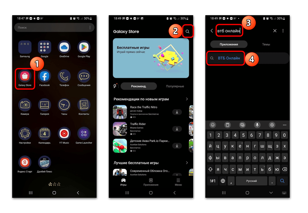 Galaxy Store – это магазин, который разработан компанией Samsung и доступен только на фирменных устройствах. Если у вас модель именно от этого производителя, то обновить ВТБ Онлайн можно через него, но одним из условий является регистрация в собственной экосистеме и предварительное выполнение входа в аккаунт. Более детально о создании профиля читайте в нашем отдельном материале.