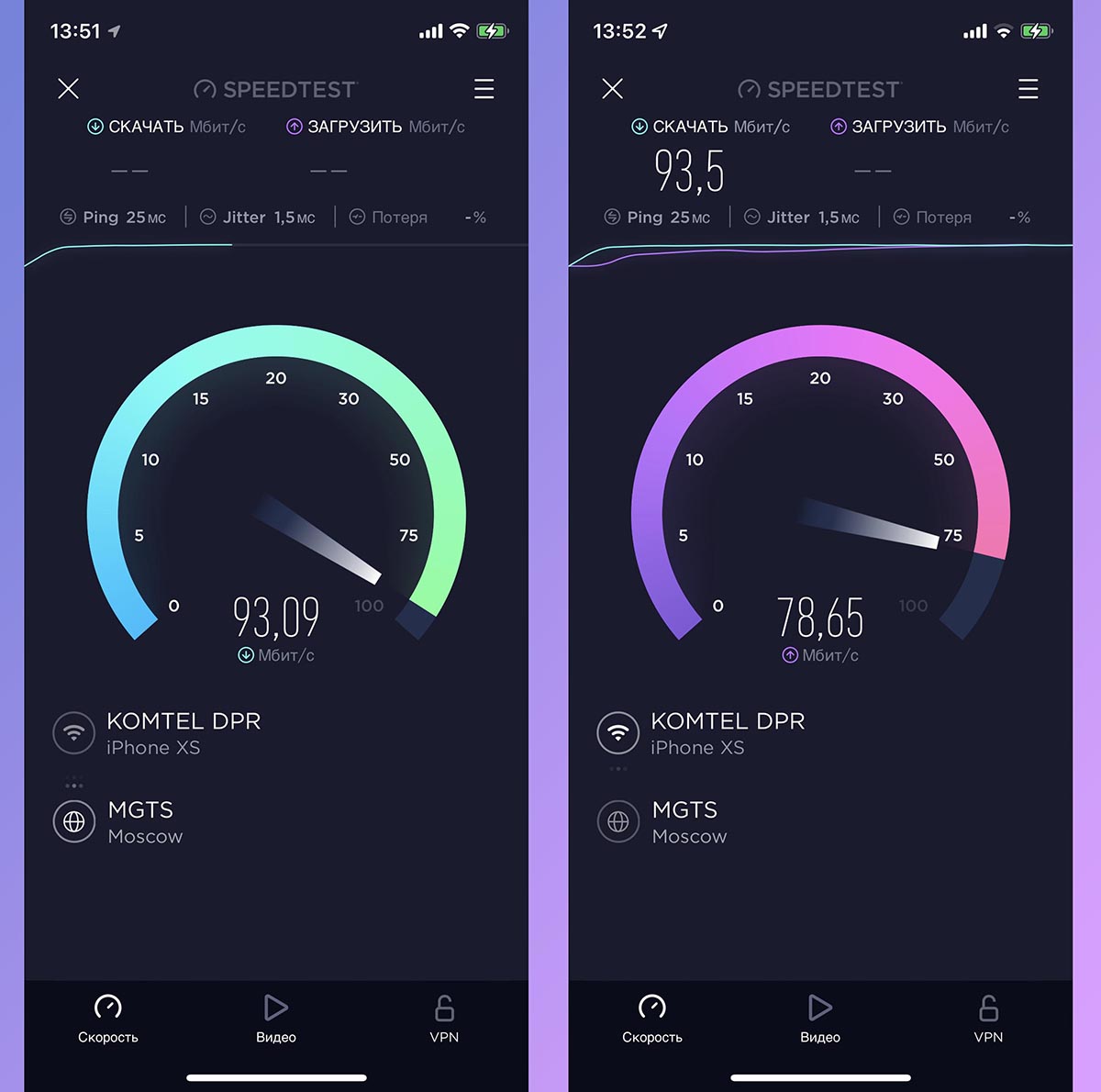 У меня к моменту доставки роутера как раз случайно (почти) оказалось в наличии три сетевых подключения от разных провайдеров. Каждый с заявленным тарифом в 100 Мбит/c дневное время буднего дня выдавали такие показатели: