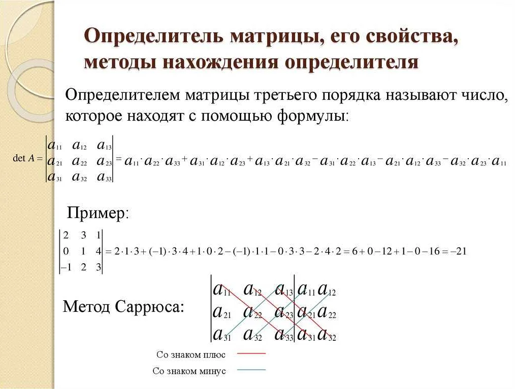 - Матричное умножение: операция, в результате которой получается новая матрица, являющаяся результатом применения комбинации строк одной матрицы и комбинации столбцов другой матрицы.