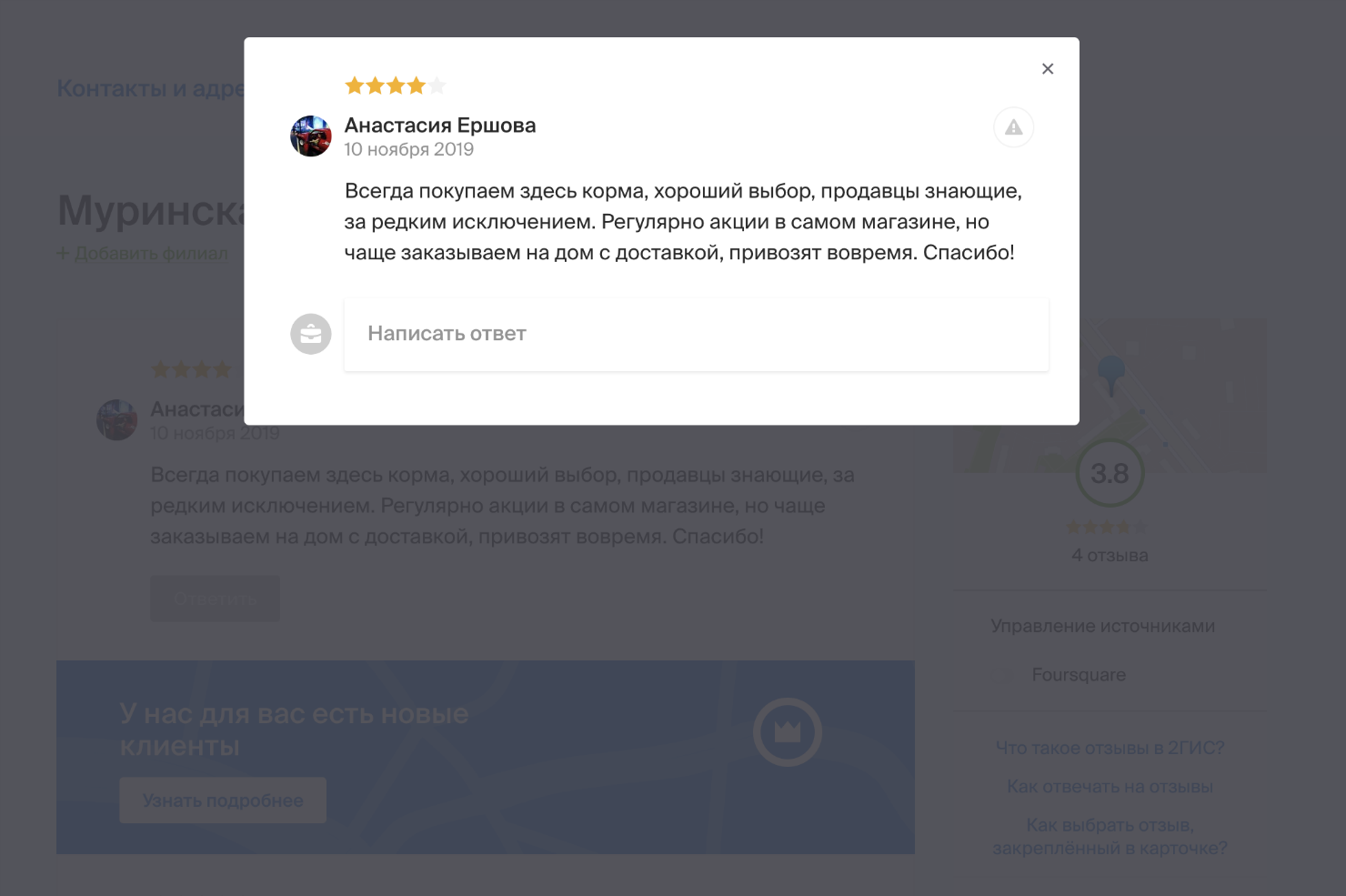 - Оставляйте отзывы на различных сайтах, чтобы расширить охват аудитории и увеличить доверие бренда. Но не забывайте о 2ГИС — оставляйте отзывы, ответы на комментарии, сообщайте о багах и пожеланиях.
