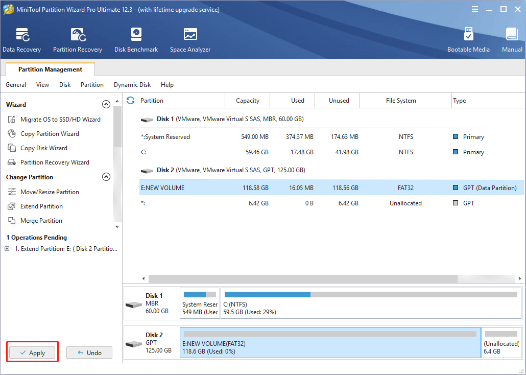 Fix 2. Extend the FAT32 Partition with MiniTool Partition Wizard