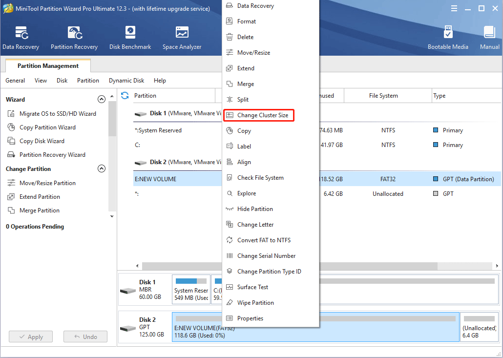 Step 3: If you decide to change the cluster size, please right-click this partition again and choose Change Cluster Size. Please note that this feature is not free.