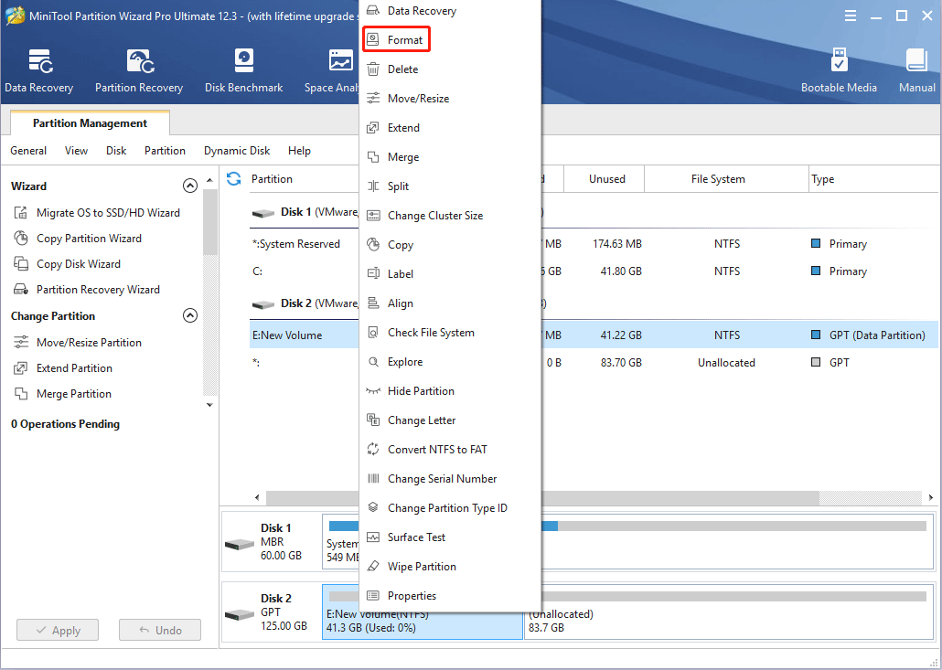 Tip: If the file system of the drive is NTFS and there are important files in the partition, you can use the Covert NTFS to FAT feature to format the drive to FAT32 without data loss. But please note that this feature is not free.
