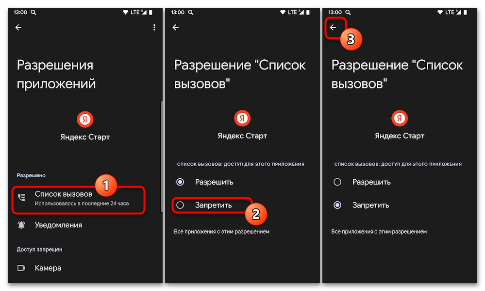 По сути, вышеописанного достаточно, чтобы Определитель номера Яндекс утратил возможность выполнять своё предназначение, — без доступа к модулю «Телефон» это невозможно, но, если есть желание, вы можете дополнительно и действуя по аналогии с предложенным в пункте инструкции выше отозвать разрешение на доступ к «Контактам»