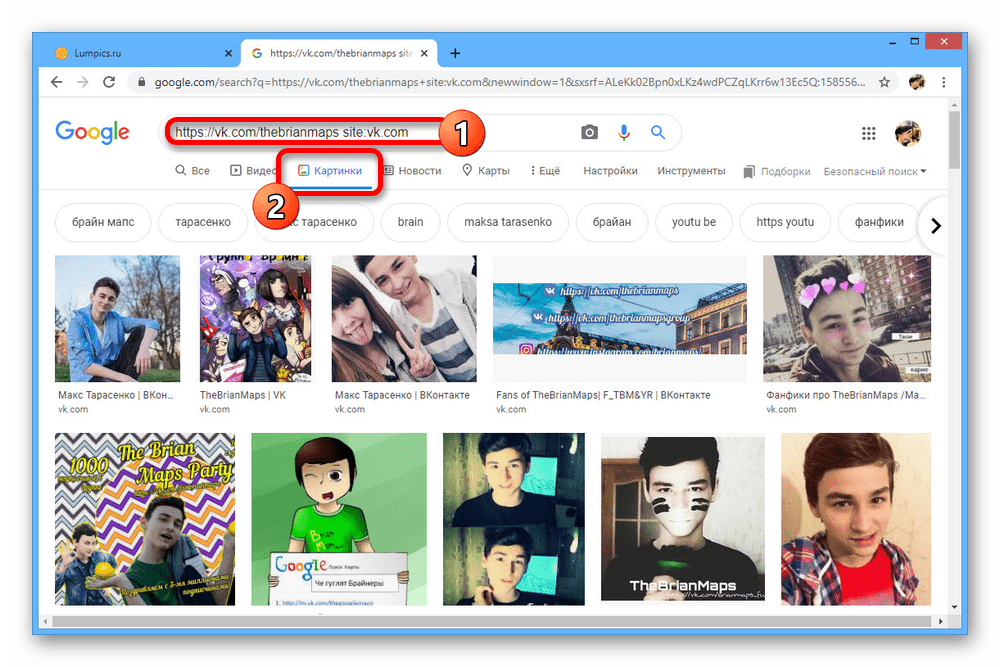 В отличие от Яндекса, поисковая система Google позволяет сразу ознакомиться с фотографиями, которые в той или иной степени связаны с указанной ваши ссылкой. Для ознакомления с ними после первого шага щелкните по вкладке «Картинки» под текстовым полем.