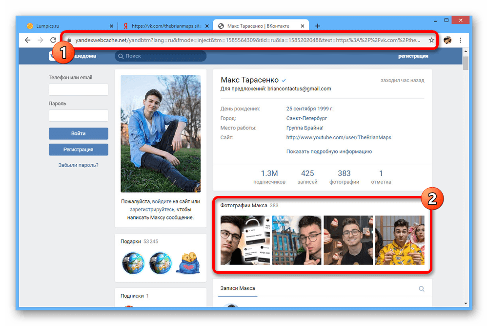 Пожалуй, оптимальный метод просмотра информации из закрытого аккаунта, включая фотографий, заключается в использовании кэша поисковых систем, которые хранят достаточно много информации о пользователях из ВКонтакте. Для этого можно прибегнуть к одному из популярных поисковиков, будь то Яндекс или Google, используя в качестве запроса имеющиеся у вас фотографии или идентификатор нужной страницы.