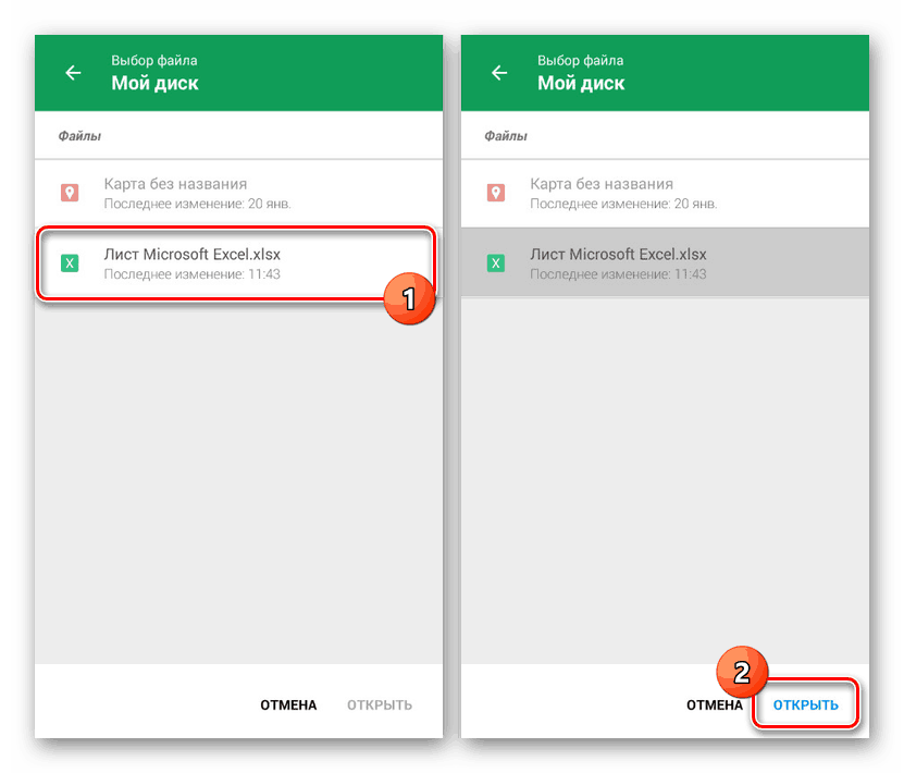 3. По аналогии с предыдущим приложением, файл XLSX можно открыть напрямую из файлового менеджера, предварительно установив Google Таблицы. В результате ПО будет работать так же, как и при открытии документа ранее описанным методом.