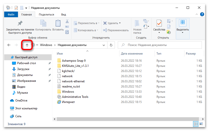 Кнопку для запуска папки «Недавние документы» при необходимости можно поместить на начальный экран, который располагается в меню «Пуск». Для этого перейдите непосредственно в директорию с недавними файлами, а затем вернитесь в предыдущий каталог, воспользовавшись специальной кнопкой слева от адресной строки.