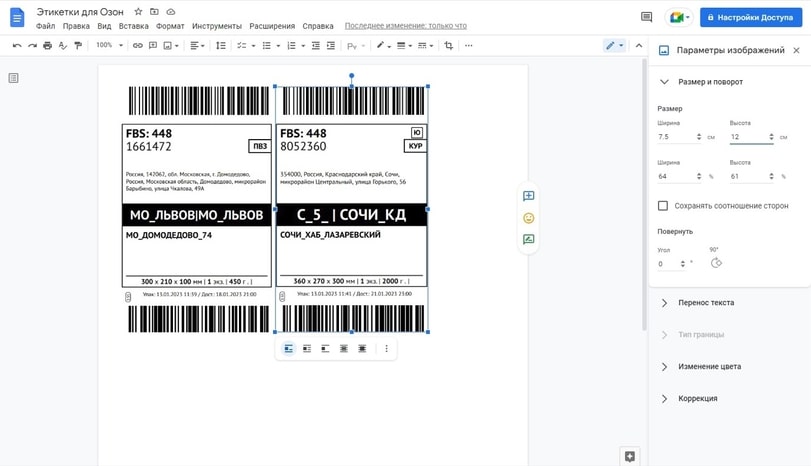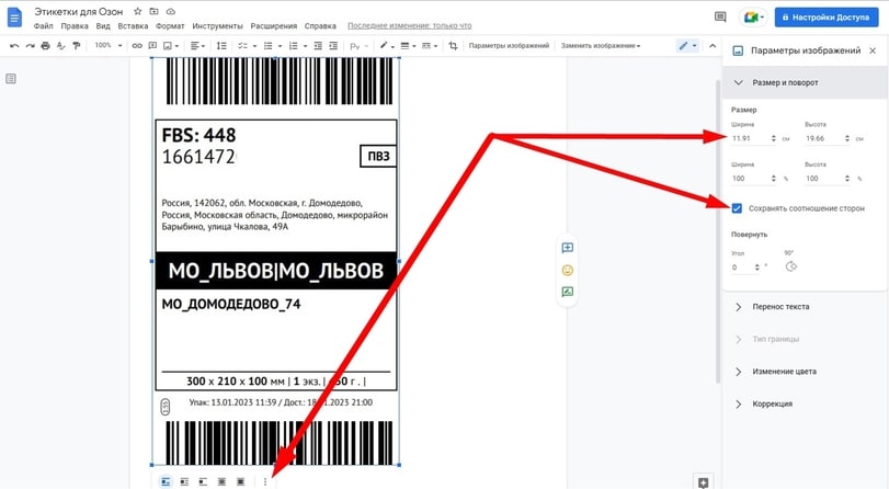 Теперь нам нужно уменьшить размер этой этикетки под стандарты Озон. Напоминаю, что она должна быть 7,5 см на 12 см.