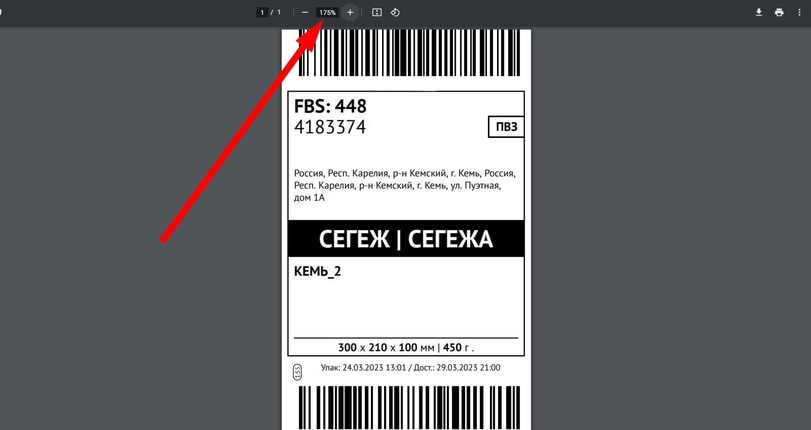 После того, как вы собираете заказ в личном кабинете Ozon вы нажимаете кнопку «распечатайте этикетку». Она сохраняется на компьютер формате pdf, после чего ее необходимо открыть в браузере.