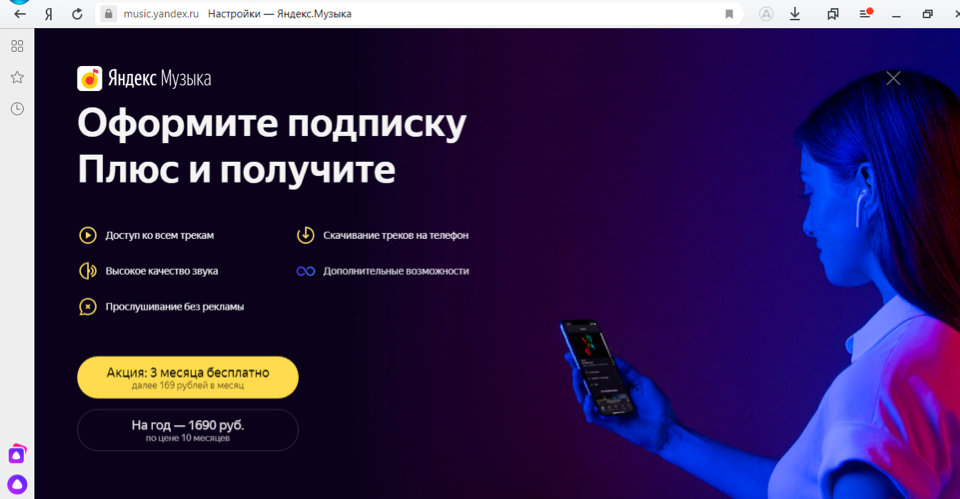 Через 90 минут или 60 треков, в перерывах между которыми придётся прослушать рекламу, приложение напомнит о возможности покупки платной подписки. Если будет принято решение её приобрести, тут всего два варианта – получить «Плюс» или упрощённую подписку. Для тех, кто пользуется и другими сервисами Яндекса (Диск, Такси и т.д.), первый пакет предпочтительнее, поскольку он предполагает расширение возможностей сразу для нескольких продуктов компании. Понять, нравится полный набор функций или нет, поможет первый бесплатный месяц использования. Если же хочется просто слушать музыку и формировать предпочтения, можно ограничиться и более бюджетной версией.