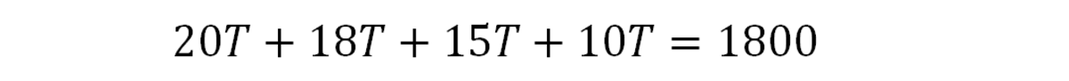 Теперь, когда эта таблица настроена, мы складываем все величины вместе, устанавливаем ее равной 1 и решаем для времени T. Мы получаем следующее уравнение, которое можно решить только с помощью алгебры: