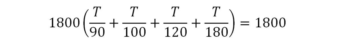 Затем найдите общий знаменатель дробей и умножьте на него обе части. В этом случае наименьший общий знаменатель — 1800.